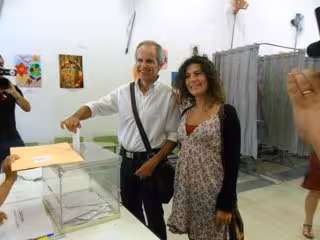Blázquez, quien ha acudido a votar acompañado por su mujer y su hijo, ha contado igualmente con el apoyo de la número dos de su candidatura, Vicky López, quien ha justificado el acompañarle porque "nos parece importante compartir presencia en todas las situaciones posibles de la campaña y ésta, por supuesto, es una de las más importantes", razón por la que Blázquez también ha acompañado después a Vicky López a su colegio electoral.