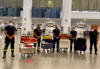 Tras diversos problemas para poder volar este pasado miércoles, estos cinco bomberos salen del aeropuerto de Málaga y, vía Estambul, tienen prevista su llegada a Beirut sobre las 3,00 horas del viernes para comenzar entonces los trabajos de búsqueda y rescate de supervivientes.