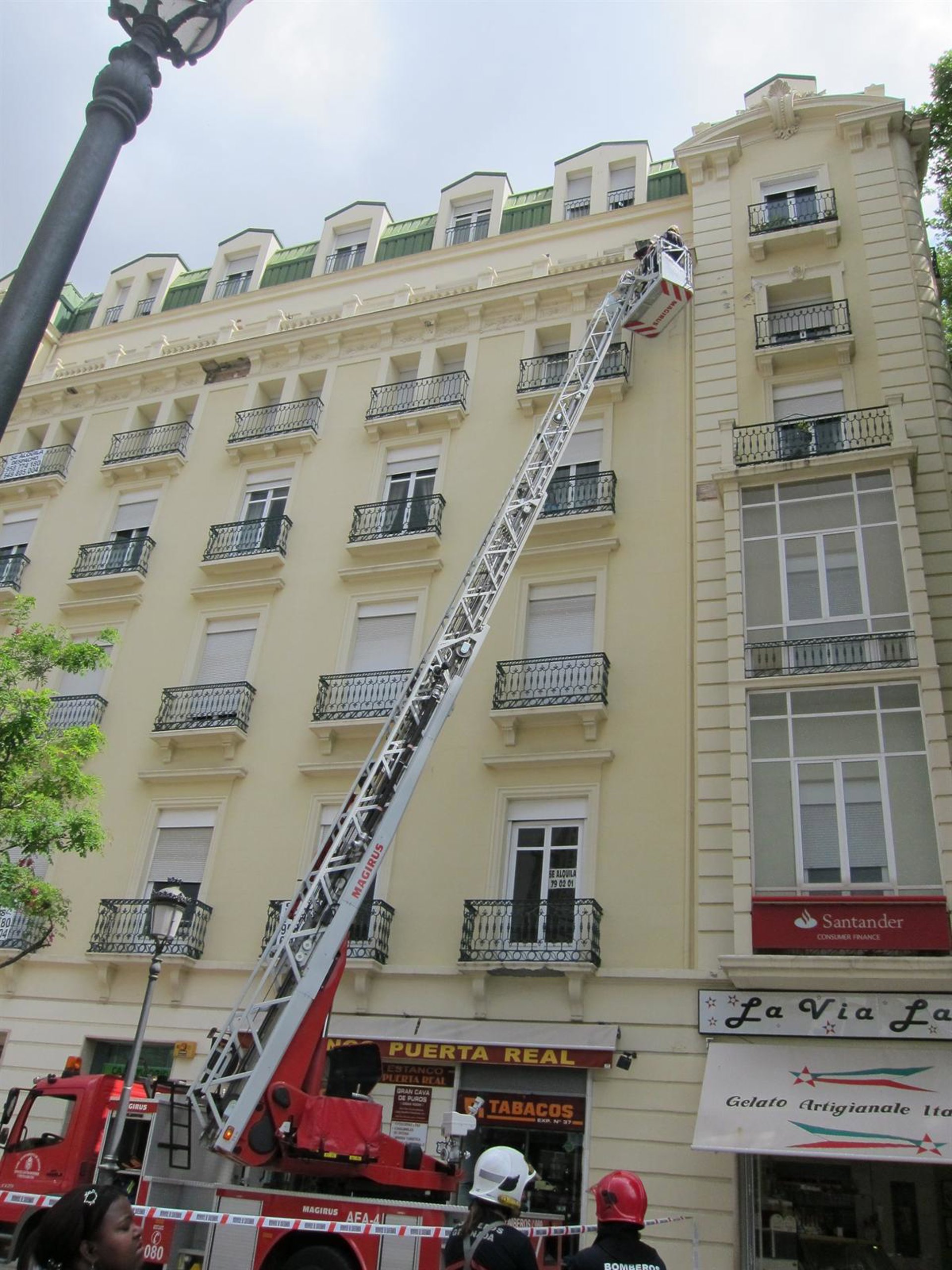 Los Bomberos han intervenido en la mañana de este jueves con un vehículo con escala en un edificio histórico del centro de la capital granadina, en Puerta Real, tras la caída de varios cascotes de su fachada, que no han provocado heridos, según han informado a Europa Press fuentes presenciales y del Parque Norte.