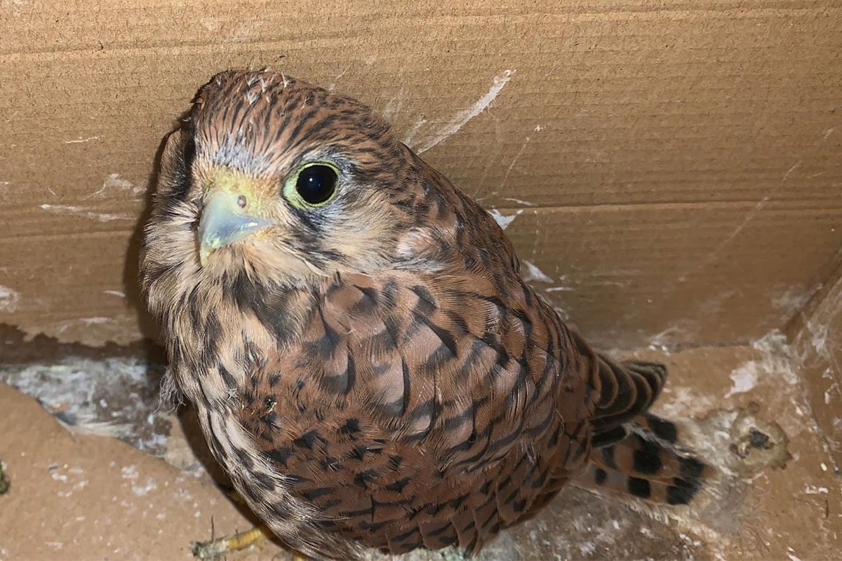 Bomberos del Parque Sur de Granada han rescatado en la mañana de este domingo a un polluelo de cernícalo que encontraron caído en un seto de la Gran Vía de la capital granadina, para trasladarlo después a un centro de recuperación de aves.