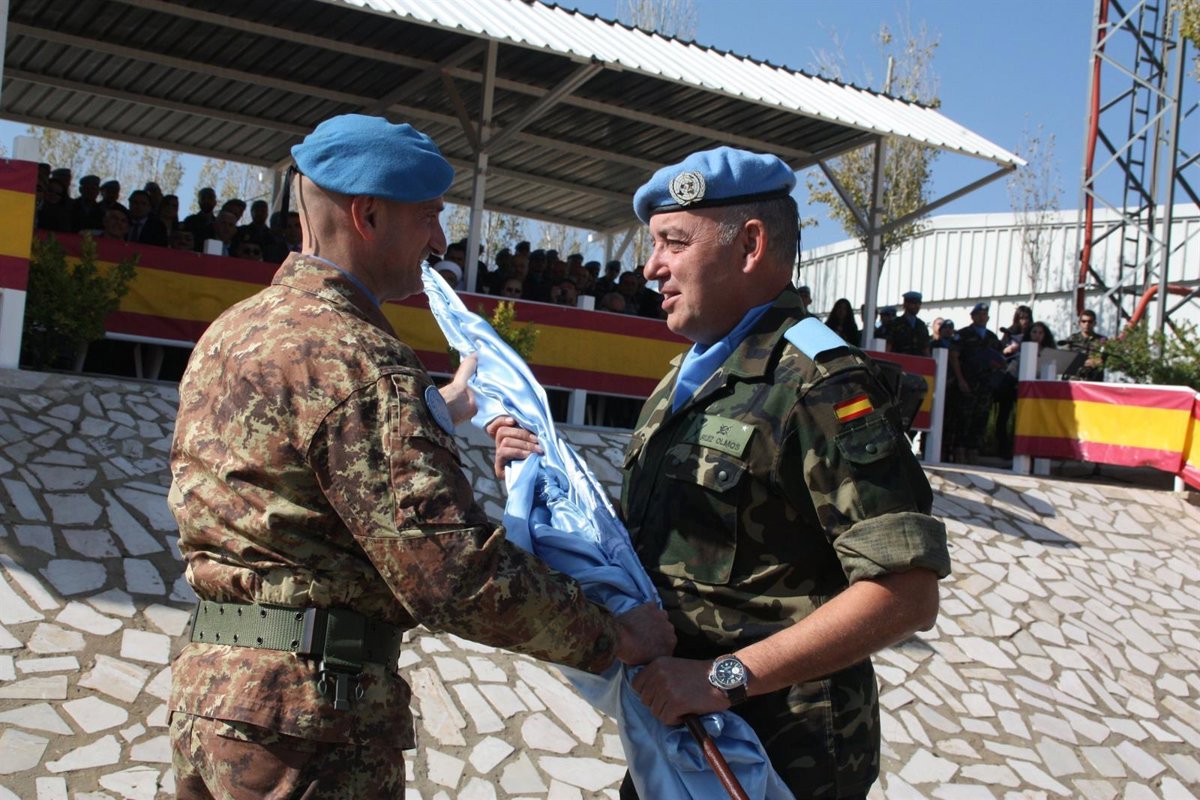 En un acto celebrado en la base 'Miguel de Cervantes' de Marjayoun, en Líbano, el general de Caballería Andrés Chapa Huidobro ha entregado la bandera de Naciones Unidas, como símbolo del relevo en el mando de la Fuerza Multinacional, al general de Infantería, jefe de la Brigada de Infantería Mecanizada (Brimz) 'Guzmán el Bueno' X, Antonio Ruiz Olmos, como nuevo jefe de la Brigada del Sector Este de la Fuerza Provisional de Naciones Unidas en el Líbano (Unifil).