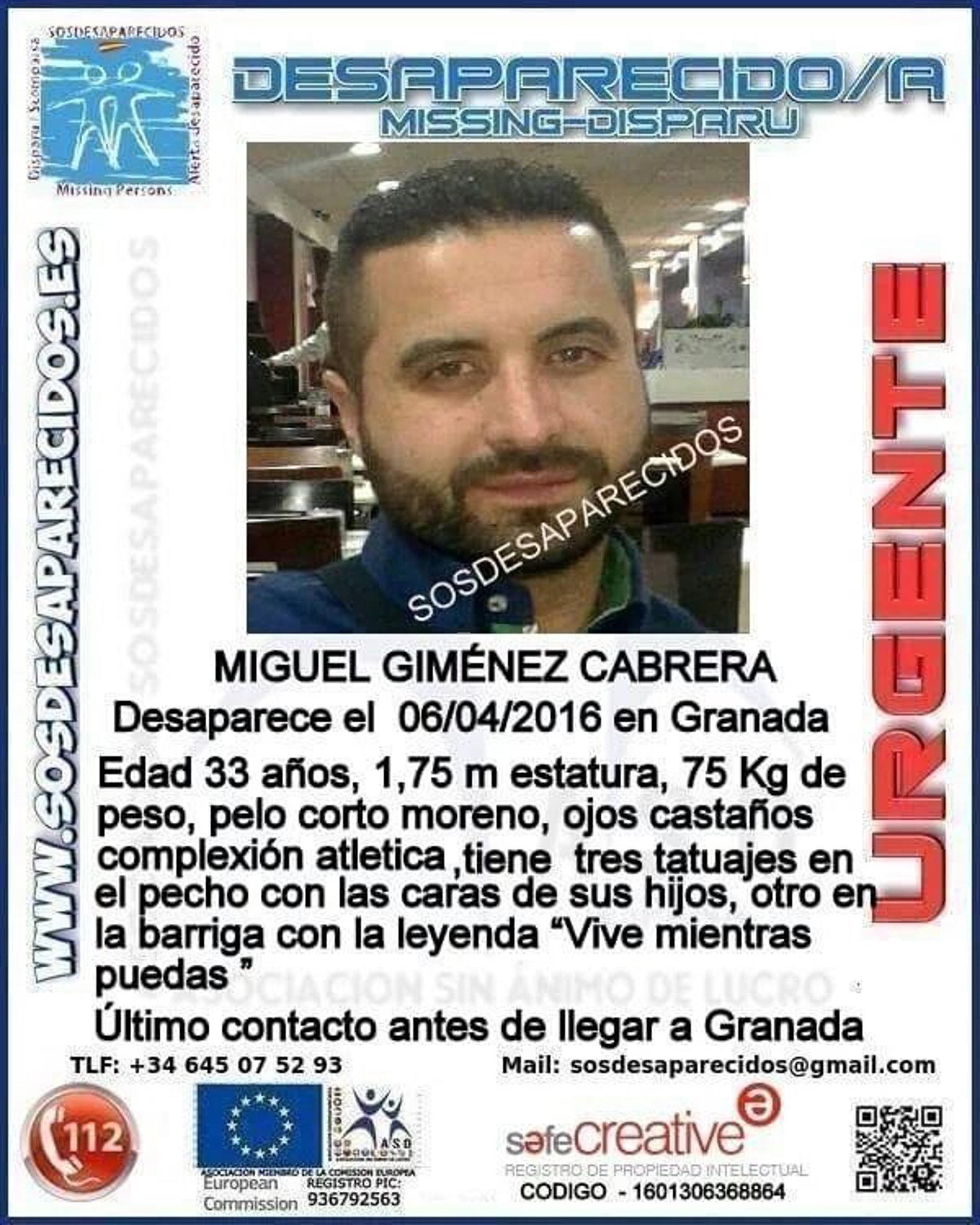 La Guardia Civil ha pedido la colaboración ciudadana a través de sus redes sociales para localizar a Miguel Giménez Cabrera, de 33 años, y desaparecido en Granada desde el pasado miércoles 6 de abril.