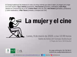 El Consejo Audiovisual de Andalucía (CAA) celebra el Día Internacional de la Mujer con una mesa redonda sobre la labor y la representación femenina en el cine que reunirá, el próximo lunes 9 de marzo, a seis profesionales de distintas áreas con mucho que contar sobre el sector audiovisual en la comunidad autónoma.