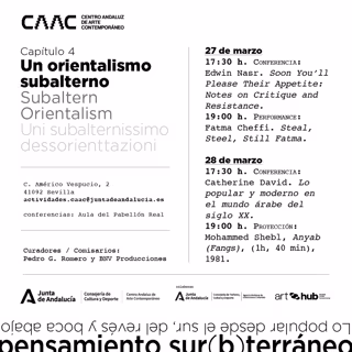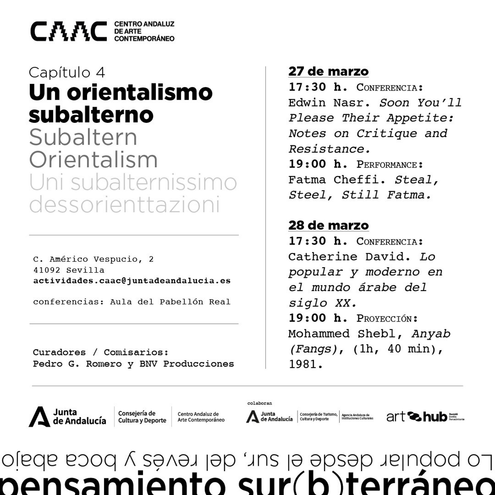 Las jornadas del ciclo internacional 'Pensamiento sur(b)terráneo. Lo popular desde el sur, del revés y boca abajo'. El Centro Andaluz de Arte Contemporáneo (CAAC) acogerá el cuarto capítulo, 'Orientalismos subalternos', los días 27 y 28 de marzo. - JUNTA DE ANDALUCÍA