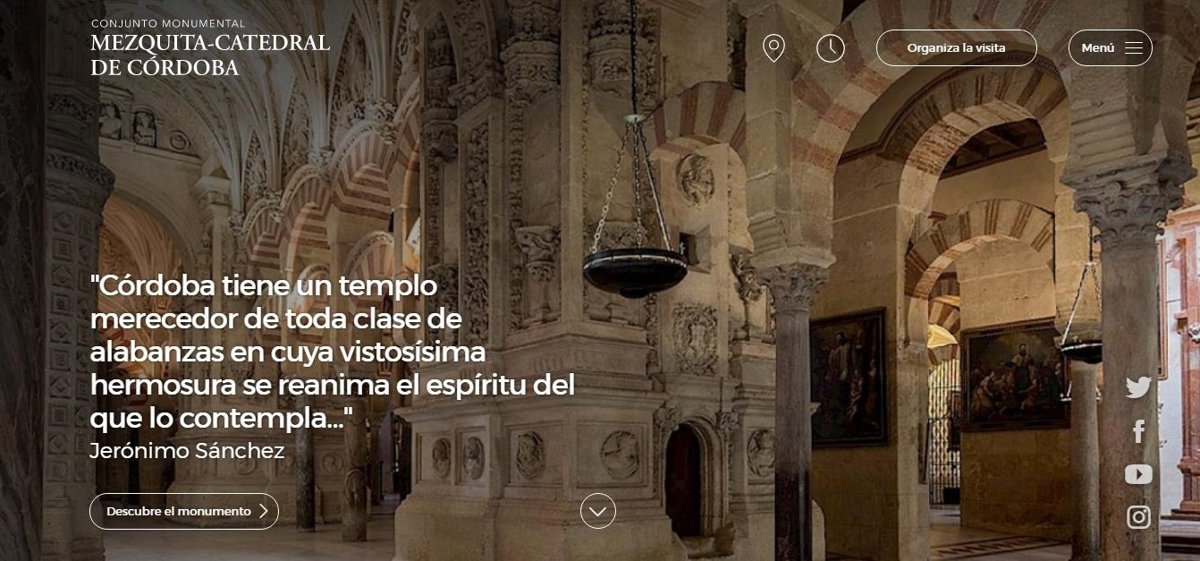 De este modo, desde dos direcciones diferentes, 'https://mezquita-catedraldecordoba.es' y 'https://cabildocatedraldecordoba.es', se puede acceder a una misma página de Internet que permitirá al usuario, tanto conocer el edificio, como a la propia institución y toda la labor que lleva a cabo.