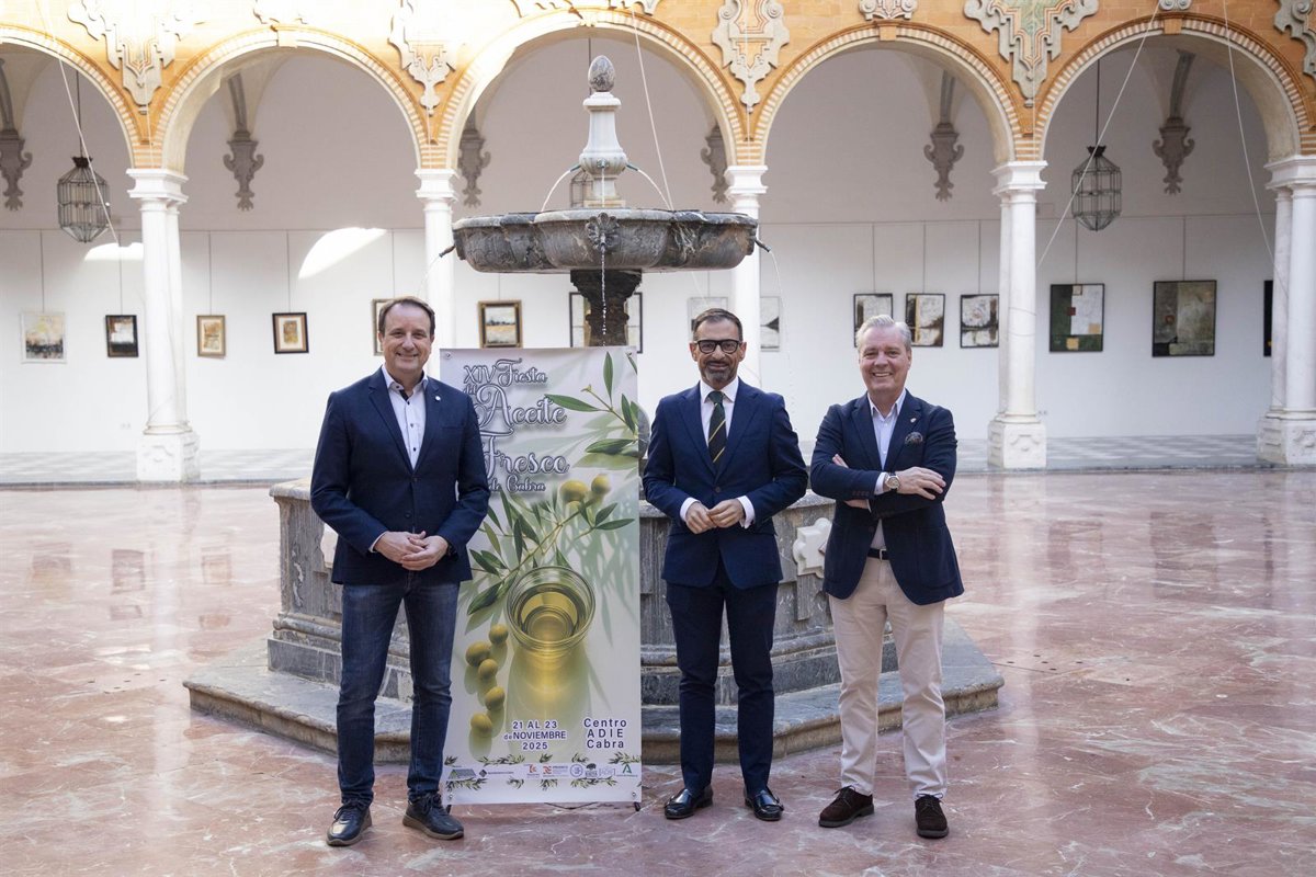 El Palacio de la Merced, sede de la Diputación de Córdoba, ha acogido la presentación del cartel de la XIV Fiesta del Aceite Fresco de Cabra, con la que la localidad de la Subbética cordobesa se convertirá en el epicentro del sector oleícola del 21 al 23 del presente noviembre, mediante una cita organizada por la Asociación de Empresarios y Comerciantes de Cabra, con el apoyo de la Diputación, que "se ha consolidado como uno de los referentes más destacados de la principal industria agroalimentaria de la provincia de Córdoba".