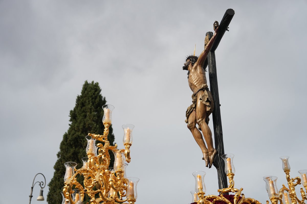 Más allá de este luctuoso suceso, el cristo trianero ha sido revestido con potencias y corona de espinas para esta ocasión especial. En los codales de su paso procesional se han incluido detalles de las hermandades del Viernes Santo, en recuerdo a las cofradías sevillanas y, sobre todo, a aquellas que realizan estación de penitencia en la misma jornada. Otra curiosidad, en este caso en el trono de la Esperanza, titular a la que le han dedicado vivas los fieles durante su recorrido, ha sido que han colocado a los angelitos que portan romero en el lateral lazos con el color de la Archicofradía y de la corporación hispalense, como muestra de unión entre Málaga y Sevilla.