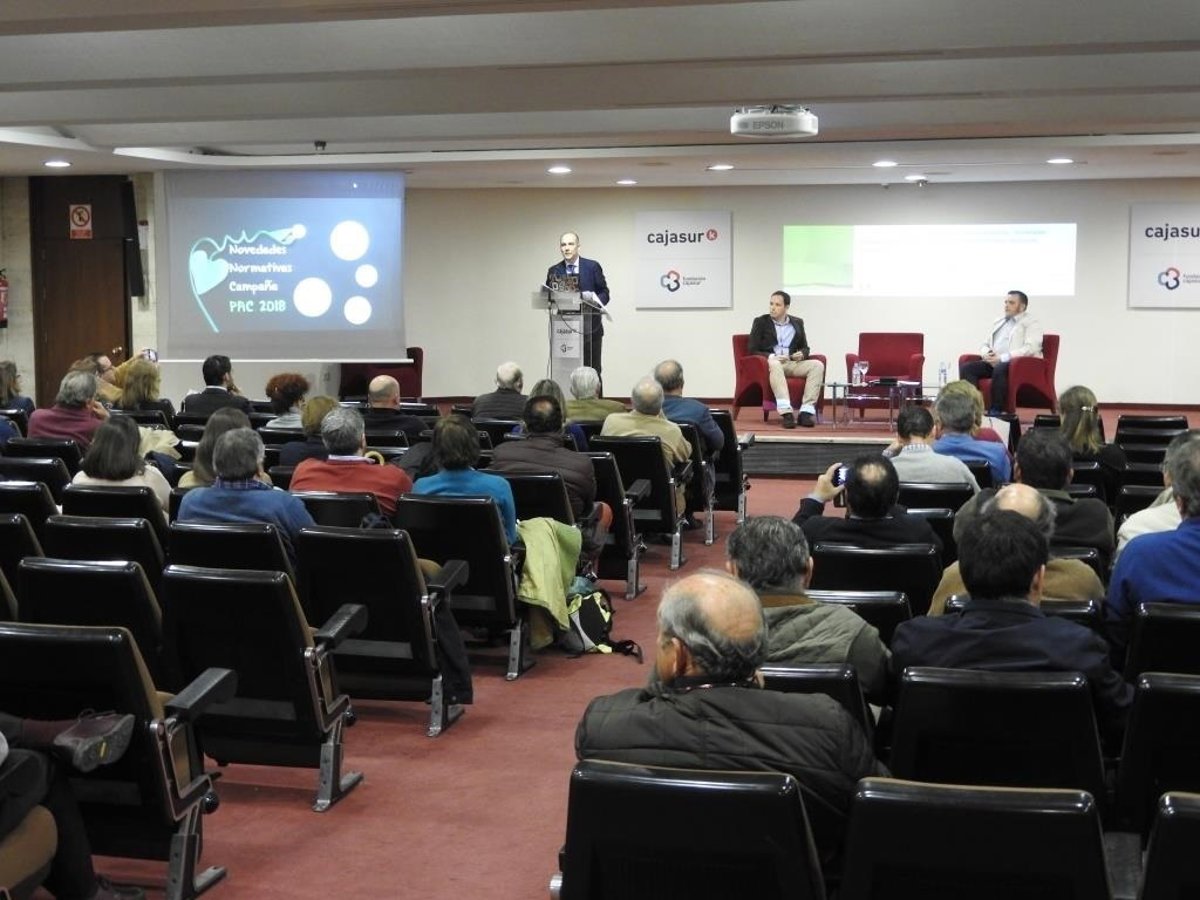 El salón de actos de Cajasur Gran Capitán ha acogido la jornada técnica agraria 'Novedades sobre la PAC en campaña 2018 e importancia del Asesoramiento Técnico en Explotaciones Agrarias', organizado por el Servicio Agrario de la entidad con la colaboración de la Delegación de Agricultura de la Junta de Andalucía y el Colegio Oficial de Peritos e Ingenieros Técnicos Agrícolas de Córdoba.
