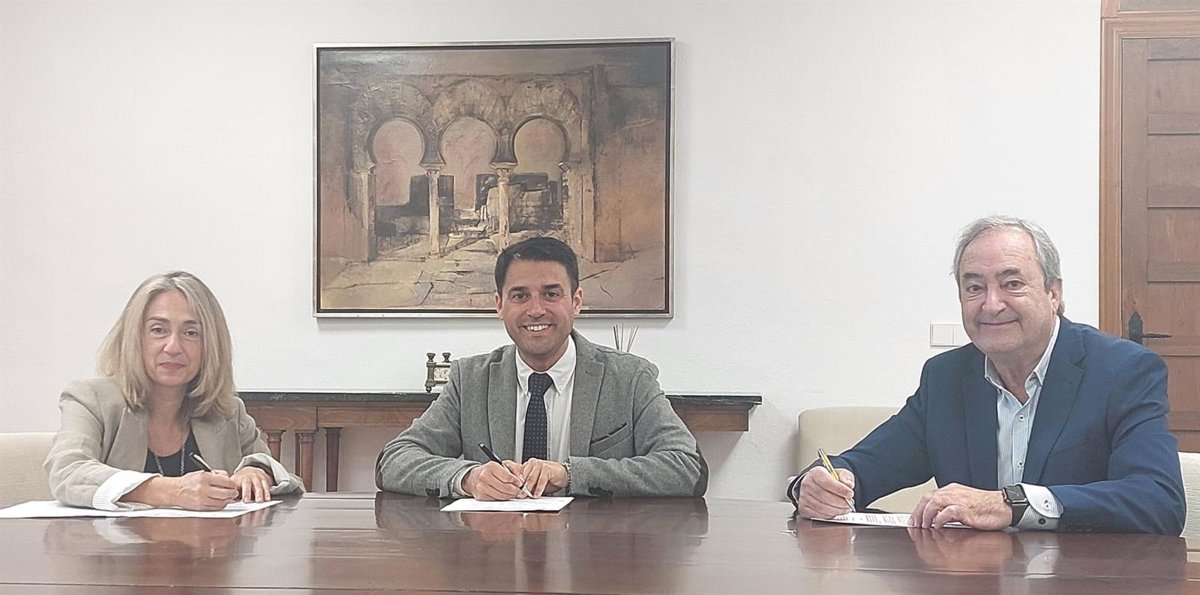 Leopoldo Ruiz (centro), entre Cándida Ruiz y Antonio de Torres, durante la firma del acuerdo. - FUNDACIÓN CAJASUR