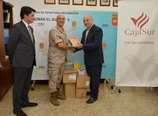 CajaSur ha hecho entraga a la Brigada de Infantería Mecanizada (Brimz) 'Guzmán el Bueno' X, en la base militar cordobesa de Cerro Muriano, de diverso material de enseñanza, destinado a los niños de Líbano, con motivo del próximo despliegue de efectivos de la Brimz X en el Sur del citado país de Oriente Próximo.