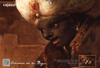 Un detalle de la 'Adoración de los Magos', obra de Lucas Jordán que ilustra el mes de diciembre en el almanaque de Cajasur para 2024. - CAJASUR