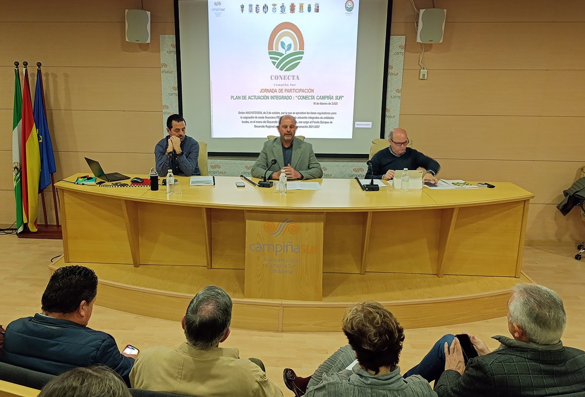 El Proyecto 'Conecta Campiña Sur' cuenta con una inversión pública total superior a siete millones de euros y se estructura en tres grandes ejes estratégicos orientados a impulsar la producción local sostenible, la soberanía alimentaria y el valor añadido del sector primario; a la conexión rural, biodiversidad y zonas verdes, mediante el uso de tecnología SIG y actuaciones de regeneración del patrimonio natural y cultural y a fomentar la movilidad sostenible y mejorar la conexión entre municipios.