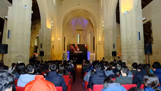 El acto de presentación ha contado con la participación del pianista Alberto de Paz y del saetero Álvaro Vizcaíno, y ha asistido también una representación de profesores y alumnos de 4º de ESO del Colegio Virgen del Carmen de Córdoba, que han compartido la iniciativa que están organizando en el marco de la Semana Santa.