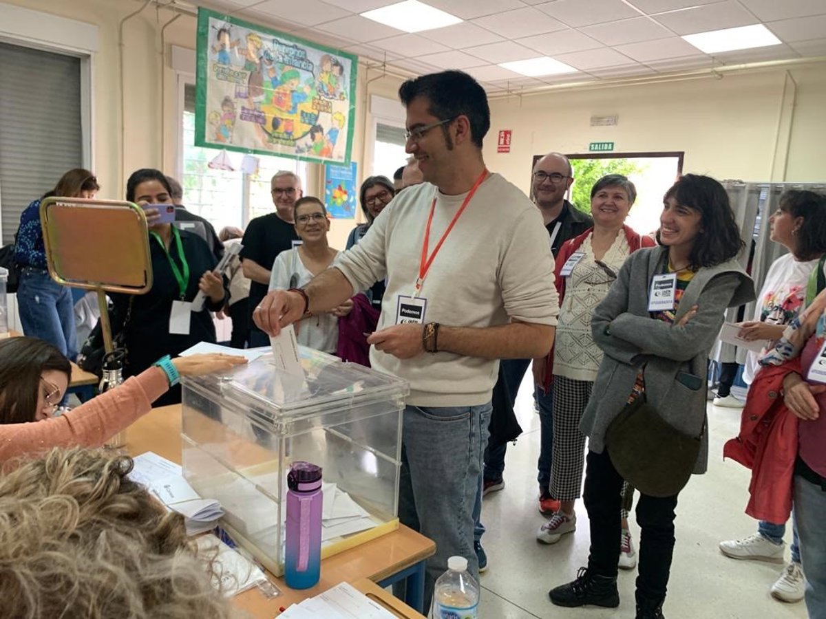 El candidato de Podemos Jaén Sentido y Común, Francisco Sánchez, vota en la jornada electoral. - PJSC
