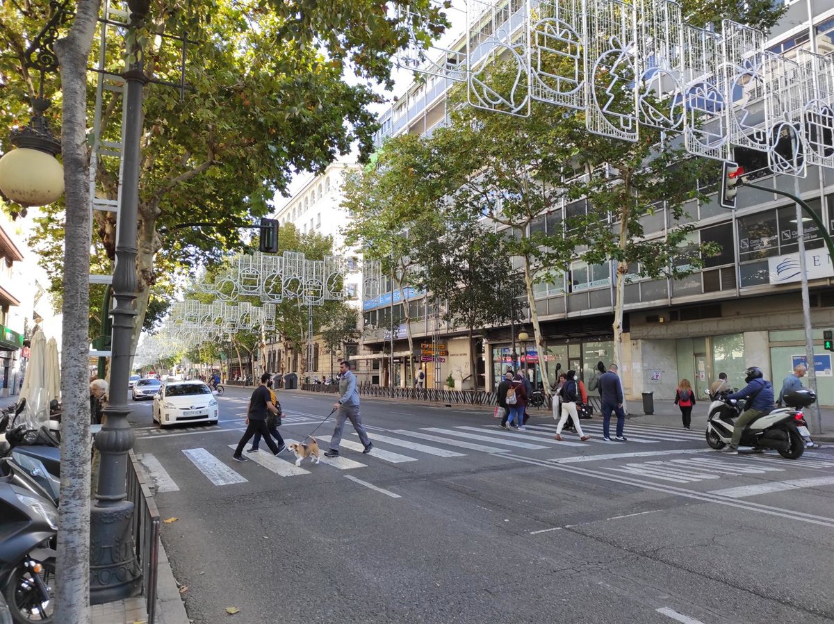 La Ronda de los Tejares de Córdoba, con personas, en su mayoría con mascarillas, cruzando un paso de peatones e instaladas ya las luces de Navidad. - EUROPA PRESS