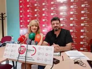 Carmen Castilla y Vicente Palomares en la sede de UGT en Córdoba. - EUROPA PRESS