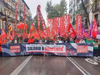 La protesta de Madrid, convocada por ambos sindicatos, ha reunido a más de 50.000 personas en Madrid, según los datos de la organización, para exigir a la patronal una subida de los sueldos de acuerdo al incremento de la inflación.
