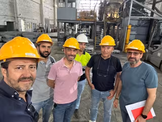 Agustín Jiménez (izda.), con sindicalistas de CCOO en Peninsular del Latón. - CCOO