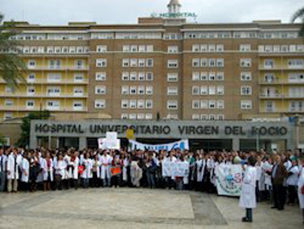 Imagen de archivo de una protesta de médicos residentes a las puertas del Hospital Virgen del Rocío de Sevilla. - EUROPA PRESS
