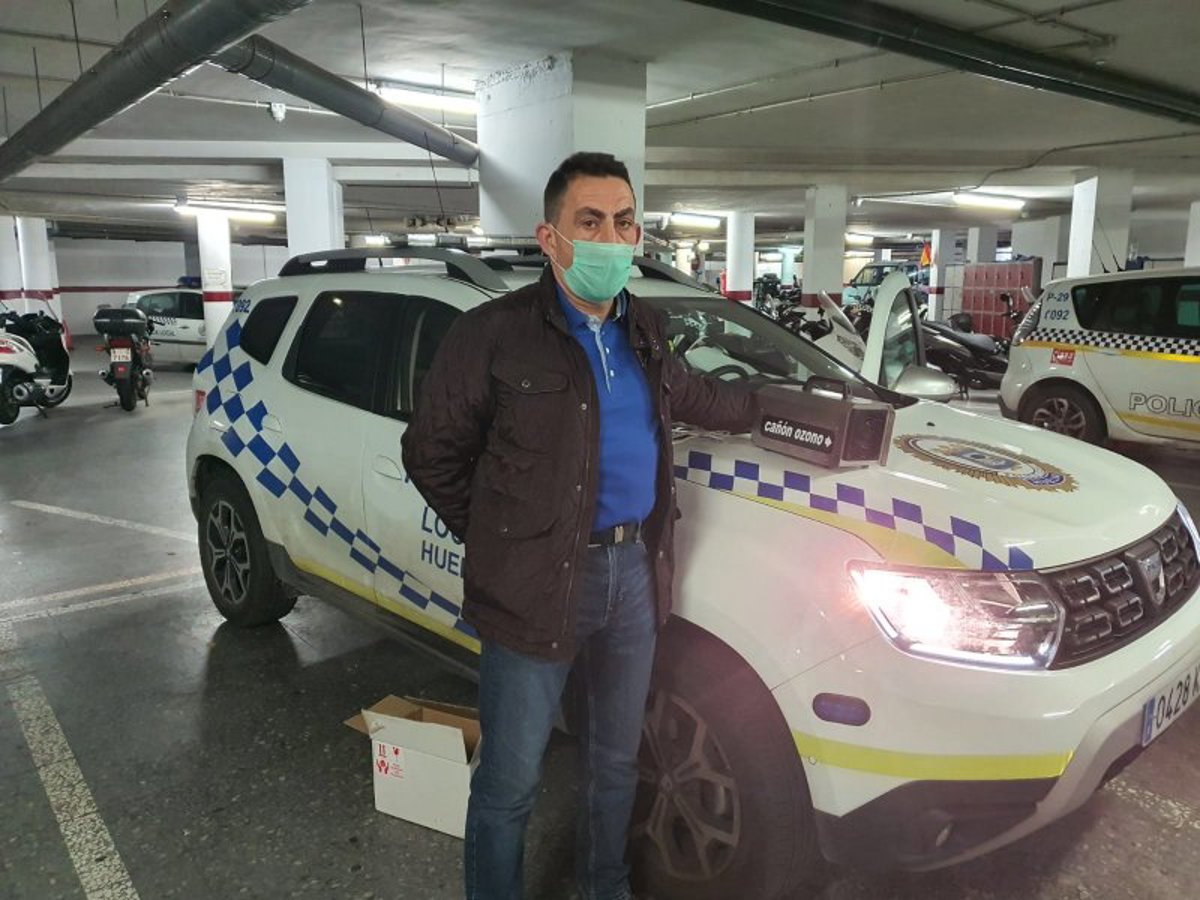 Imagen difundida por CSIF Huelva en su página web de los cañones de ozono para desinfectar vehículos de la Policía Local. - CSIF HUELVA