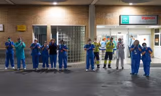 Personal sanitario del hospital Virgen del Rocio de Sevilla aplauden en la puerta de Urgencia del centro. Sevilla a 18 de marzo 2019 - Eduardo Briones - Europa Press - Archivo