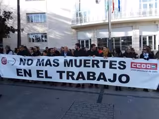 Los sindicatos CCOO y UGT se han concentrado este lunes en Jaén "en señal de duelo y protesta" tras el último accidente laboral mortal en la provincia, en el que un joven trabajador de 21 años falleció el viernes en Alcalá la Real, y han lamentado el incremento de la siniestralidad con resultado de muerte.