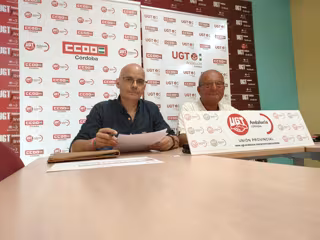 Archivo - Los responsables de Salud Laboral de CCOO y UGT de Córdoba, Aurelio Martín y Jaime Sarmiento, en una rueda de prensa. - CCOO - Archivo