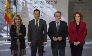 Así lo han puesto de manifiesto el presidente de la CEA, Javier González de Lara, y las secretarias generales de CCOO-A y UGT-A, Nuria López y Carmen Castilla, respectivamente, en una rueda de prensa junto al presidente de la Junta, Juanma Moreno, en el Palacio de San Telmo tras participar en una reunión de la 'Mesa del Diálogo Social' promovida por la Administración autonómica.
