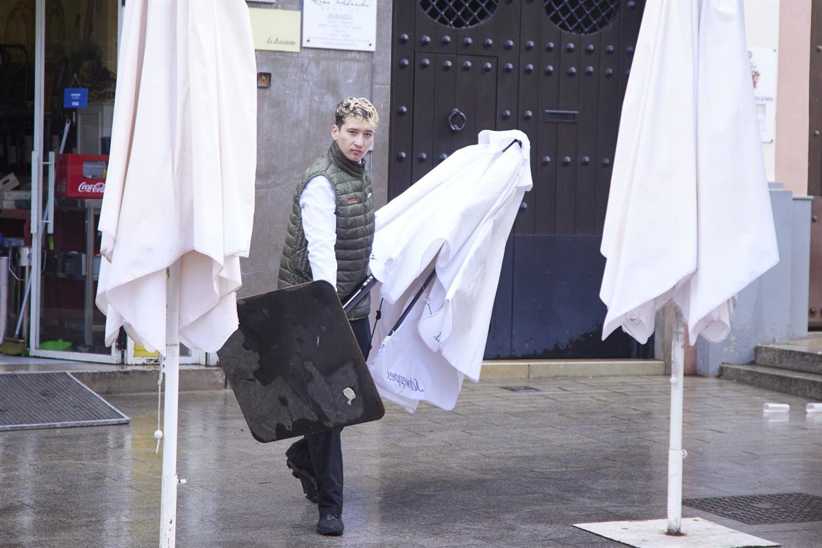 Archivo - Un camarero saca una sombrilla a la terraza de un bar. Imagen de archivo. - Joaquin Corchero - Europa Press - Archivo