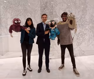 De izquierda a derecha la actriz y cofundadora de El Señor Sapo, Zeleste Merino; el director-gerente de CajaGranada Fundación, Fernando Bueno; y el actor y cofundador de la compañía, César Goca - CAJAGRANADA FUNDACIÓN
