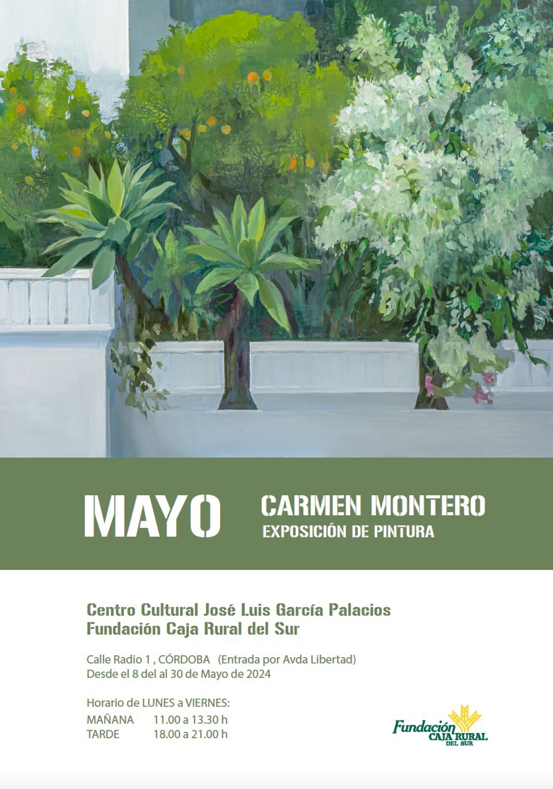 La sala de exposiciones del Centro Cultural 'José Luis García Palacios' en Córdoba de Fundación Caja Rural del Sur expone desde este miércoles la muestra de Carmen Montero denominada 'Mayo', cuyo acto inauguración de este nuevo evento cultural de primavera será a las 19,00 horas.