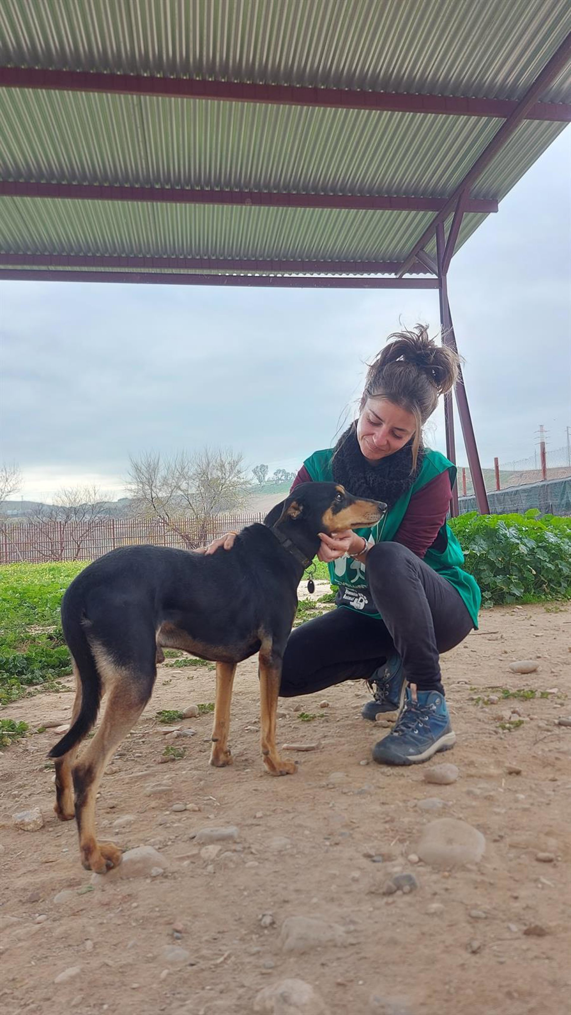 Un perro y una cuidadora en el Centro de Sanidad y Bienestar Animal (SBA) de la empresa municipal de Saneamientos de Córdoba (Sadeco). - SADECO