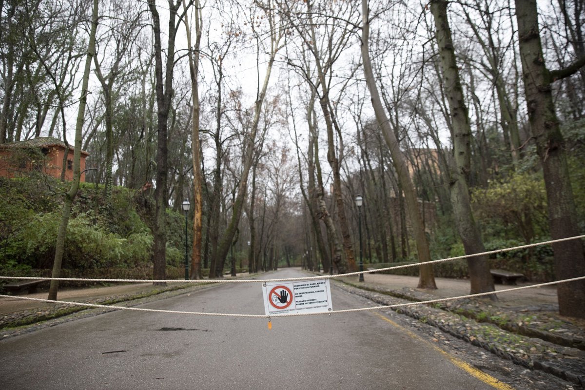Cierre de los jardines del entorno de la Alhambra en prevención por el viento - ARSENIO ZURITA - EUROPA PRESS