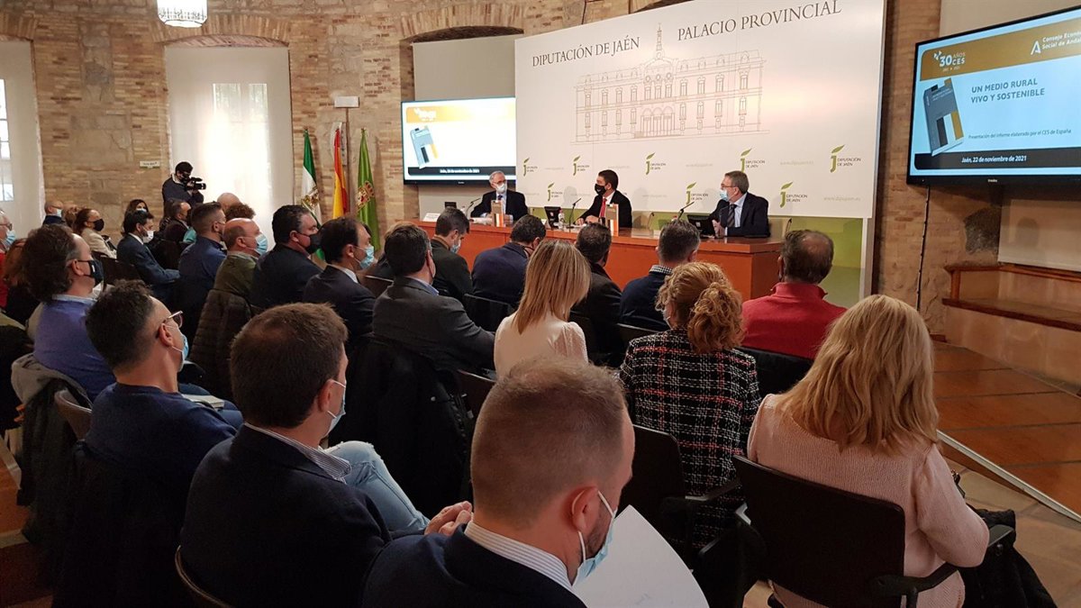Un documento elaborado por el citado organismo, que ha sido presentado este lunes en Jaén en una jornada inaugurada por el presidente de la Diputación, Francisco Reyes, y clausurado por la consejera de Empleo, Formación y Trabajo Autónomo de la Junta de Andalucía, Rocío Blanco. Esta cita también ha contado, entre otros, con el presidente del CES, Antón Costas, y el consejero Domiciano Pastor, además del presidente del Consejo Económico y Social de Andalucía, Ángel J. Gallego.