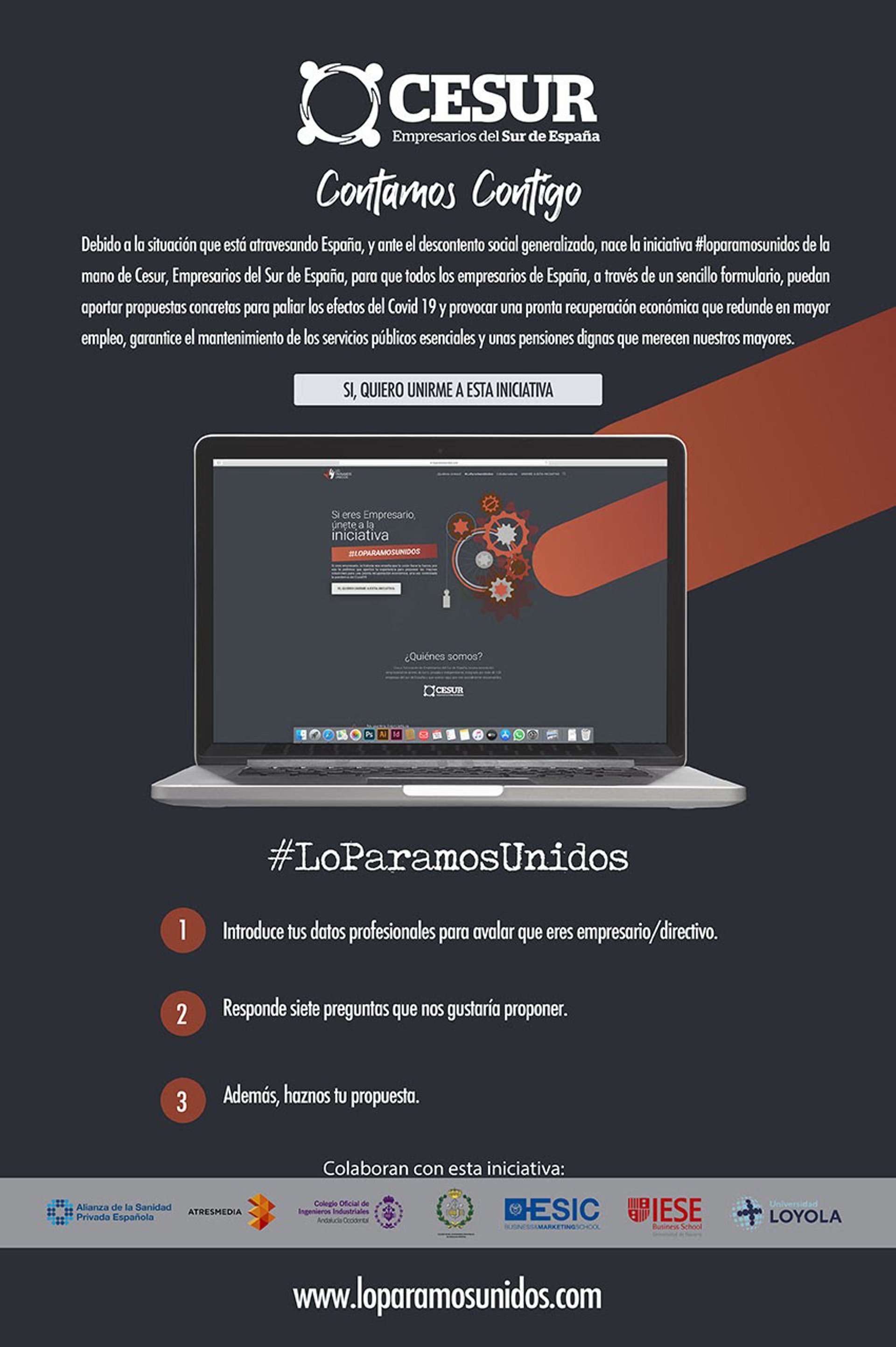 '#LoParamosUnidos' se une a la docena de propuestas económicas que Cesur y sus socios han hecho llegar a las autoridades españolas, comunitarias, andaluzas y extremeñas (ámbitos de actuación de la asociación), y que la junta directiva de la Asociación ha considerado "oportuno extender a todos los empresarios y directivos españoles que deseen participar".