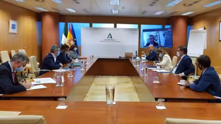 Imagen de un encuentro de Cesur con el consejero de Hacienda, Juan Bravo. - CESUR