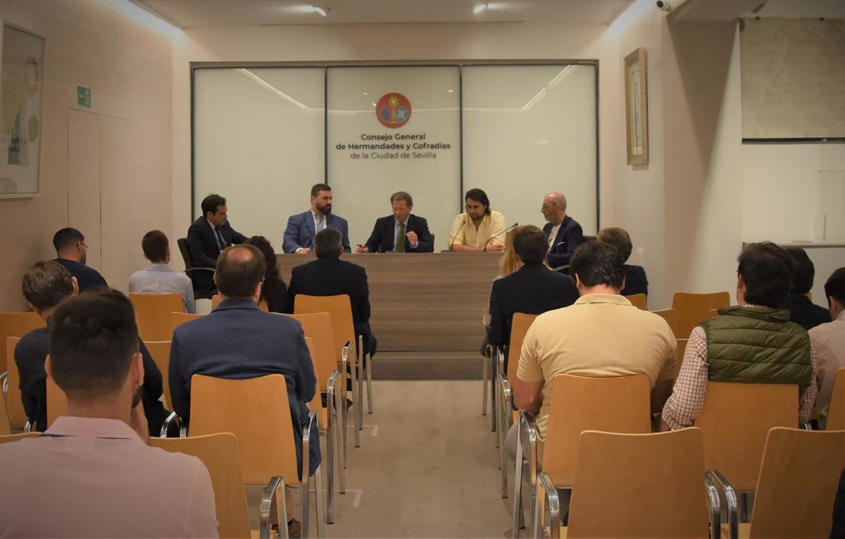 El salón de actos del Consejo General de Hermandades y Cofradías de Sevilla ha acogido la presentación del Curso 'Gestión, Marco Jurídico y Redes Sociales en Hermandades y Cofradías' del Instituto de Posgrado CEU Andalucía con la mesa redonda 'El valor de la ética y la legalidad en las RRSS y comunicación digital de las Hermandades y Cofradías'.