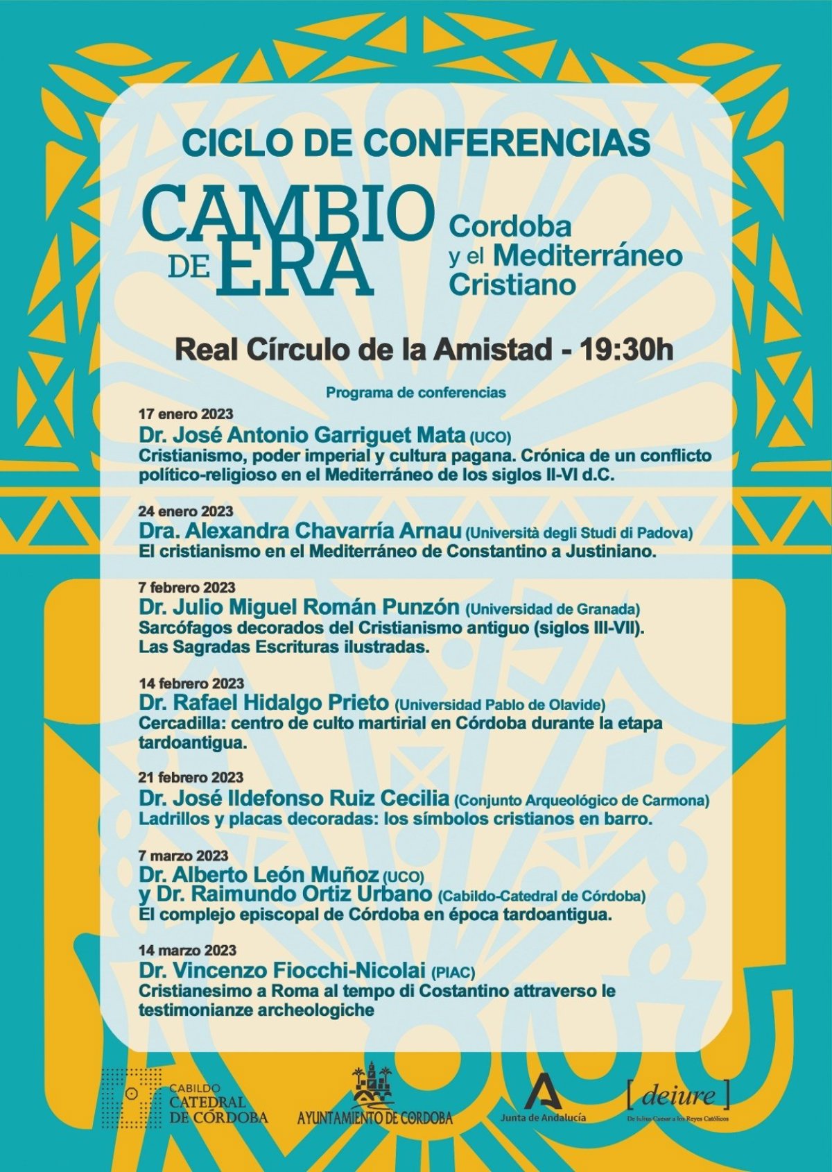 Cartel del ciclo conferencias que profundizará en los contenidos de la muestra 'Cambio de Era. Córdoba y el Mediterráneo Cristiano'. - CABILDO CATEDRAL DE CÓRDOBA