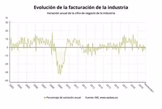 A nivel nacional, la cifra de negocios de la industria retrocedió un 2,8% el pasado mes de noviembre respecto al mismo mes de 2018, mientras que las entradas de pedidos del sector se desplomaron un 22,3%, según datos difundidos este martes por el Instituto Nacional de Estadística (INE), que ha precisado que el hundimiento interanual de los pedidos se debe a que en noviembre de 2018 se realizó un pedido de gran valor en la rama de fabricación de otro material de transporte.