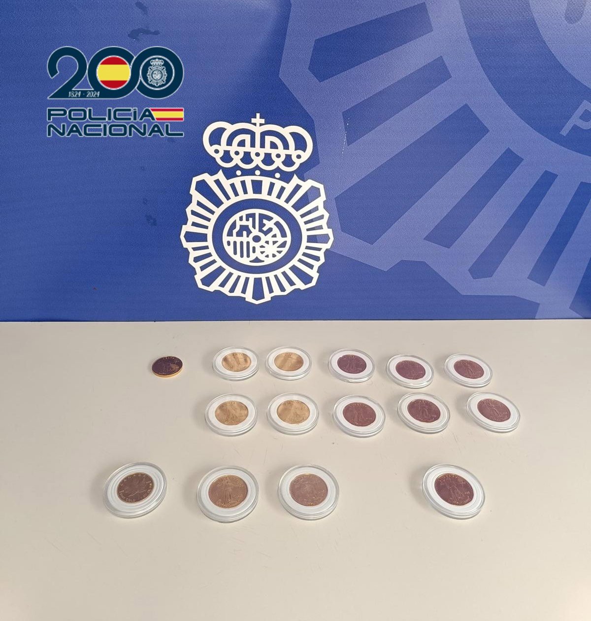 Réplicas de monedas de oro intervenidas. - POLICÍA NACIONAL