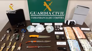 La Guardia Civil ha detenido a cinco personas, cuatro de ellas en Aguilar de la Frontera (Córdoba) y la quinta en Montilla (Córdoba), como presuntas autoras de un delito de tráfico de drogas, otro de tenencia ilícita de armas y otro de hurto, logrando con ello desmantelar un punto de venta de drogas en Aguilar, donde ha intervenido heroína, cocaína en roca, nueve dosis de bazuko, tres motocicletas, una de ellas sustraída, 12 relojes, una Play Station 5, 1.500 euros en metálico, ocho gallos, cuatro armas blancas, dos de ellas prohibidas, y un dispositivo 'taser'.