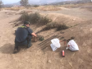 Al inspeccionar la zona, los agentes han detallado que los investigados "habían colocado ocho arbolillos, siete naturales y uno artificial y que habían capturado ocho pajarillos utilizando cuatro pajarillos muertos y un dispositivo electrónico como reclamo; pegamento para ratas y jaulas para guardar las aves capturadas".