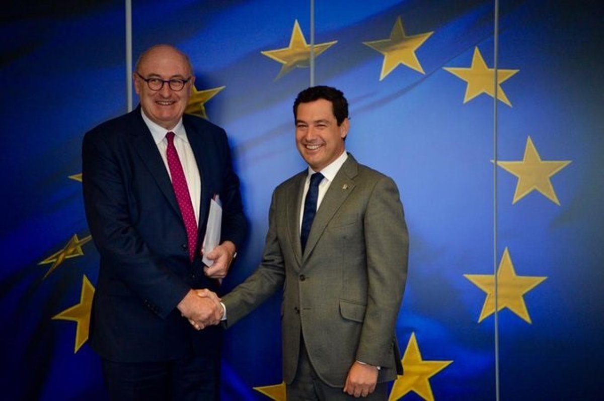 El presidente de la Junta, Juanma Moreno, ha pedido este lunes al comisario de Agricultura y Desarrollo Rural de la Unión Europea y próximo comisario de Comercio, Phil Hogan, que la futura Política Agraria Comunitaria (PAC) sea "simplificada" y se mantengan los recursos, al tiempo que ha anunciado que habrá fondos europeos para la promoción de productos agrícolas andaluces en nuevos mercados como China ante la situación que puede generar un Brexit duro y la política de aranceles de Estados Unidos. (Leer más https://bit.ly/2oWOhIK)