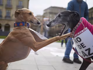 Archivo - Dos galgos durante la manifestación bajo el lema `No a la caza, foto de archivo - Eduardo Sanz - Europa Press - Archivo