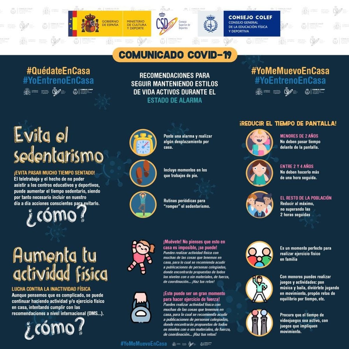 El Colef ha indicado que ante la proliferación de iniciativas que promueven la realización de ejercicio físico durante el confinamiento provocado por la expansión del coronavirus Covid-19, quiere incidir "en la importancia de seguir las recomendaciones de profesionales cualificados y las pautas para asegurar beneficios que el ejercicio físico tiene sobre la salud, tanto física como psíquica y social, y reducir al máximo los perjuicios que pudiera ocasionar una mala práctica"