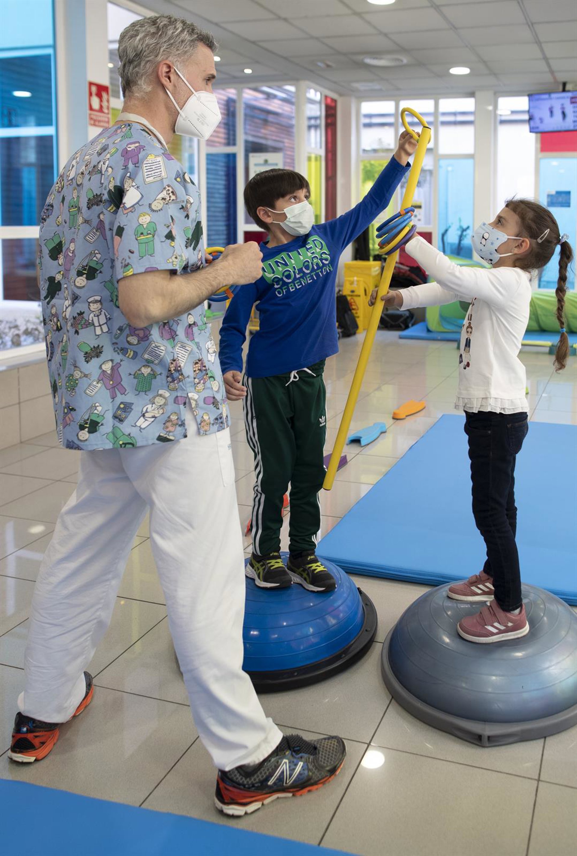 Archivo - Un fisioterapeuta aplica una terapia a dos niños. - Eduardo Parra - Europa Press - Archivo