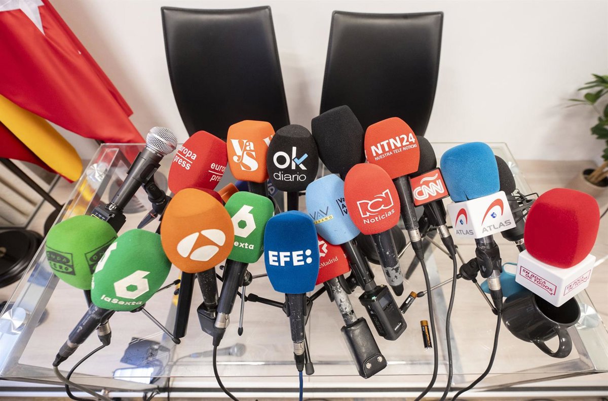 Archivo - Más de una decena de micrófonos de diferentes medios de comunicación durante una rueda de prensa, a 29 de agosto de 2024, en Madrid (España). - Alberto Ortega - Europa Press - Archivo