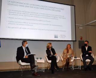 En la primera mesa redonda para abordar las 'Líneas y Programas', Sanchís ha señalado que entre todos los agentes "tenemos que conseguir que los fondos 'Next Generation' sirvan como mecanismo de cohesión, impulsar la sostenibilidad y modernizar el parque residencial andaluz".