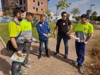 Sindicalistas de UGT reparten en obras de Córdoba información sobre la jornada intensiva en la construcción. - UGT