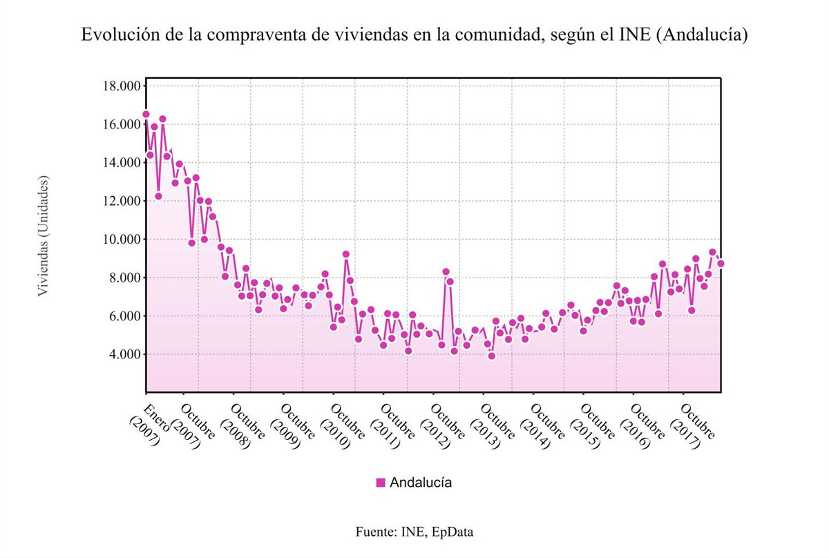 La compraventa de viviendas ha aumentado en Andalucía un 20,4 por ciento durante el mes de julio, tras intercambiarse un total de 8.730 inmuebles, según datos del Instituto Nacional de Estadística (INE), que precisa que a nivel nacional la compraventa de viviendas se incrementó un 16,2 por ciento en relación al mismo mes de 2017, hasta sumar 45.900 operaciones